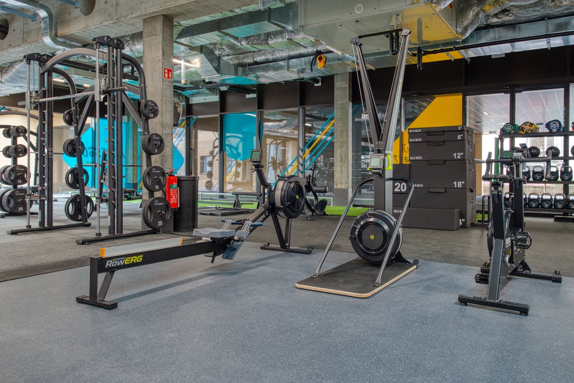 Kardiogeräte, funktionales Equipment sowie freie und geführte Gewichte