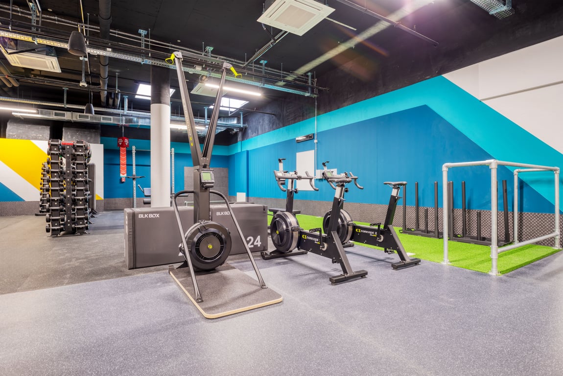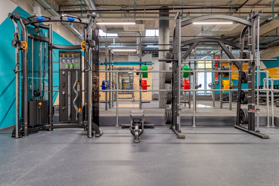 Kardiogeräte, funktionales Equipment sowie freie und geführte Gewichte